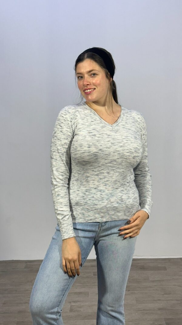 חולצת סריג מלנז’ בייסיק מחשוף V