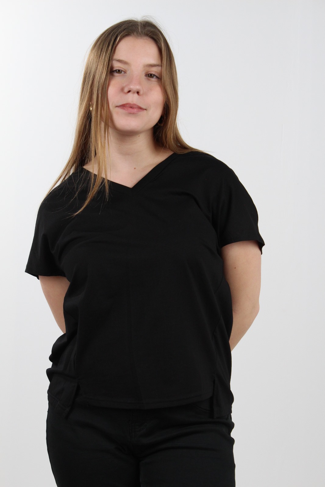חולצת בייסיק מבד נעים וכיפי צווארון וי