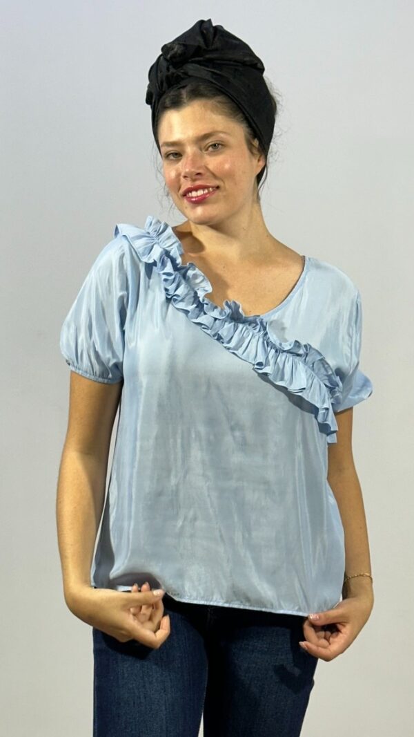 חולצה בגזרה רחבה צווארון וי משולבת פרנזים