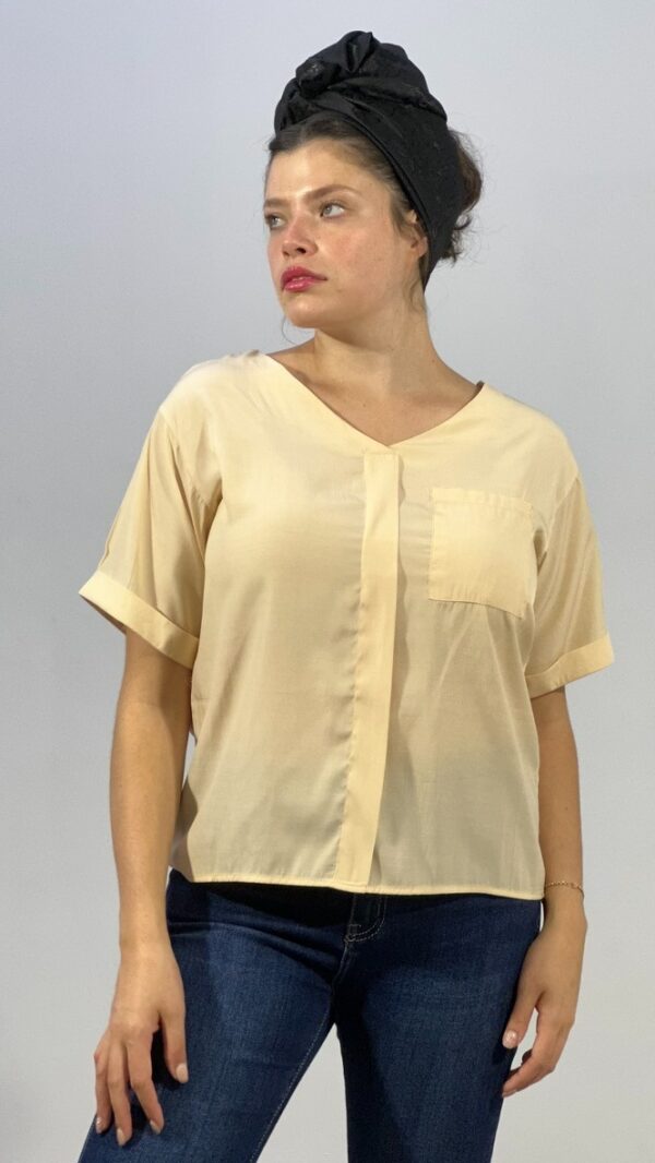 חולצה בגזרה ישרה צווארון וי וכיס