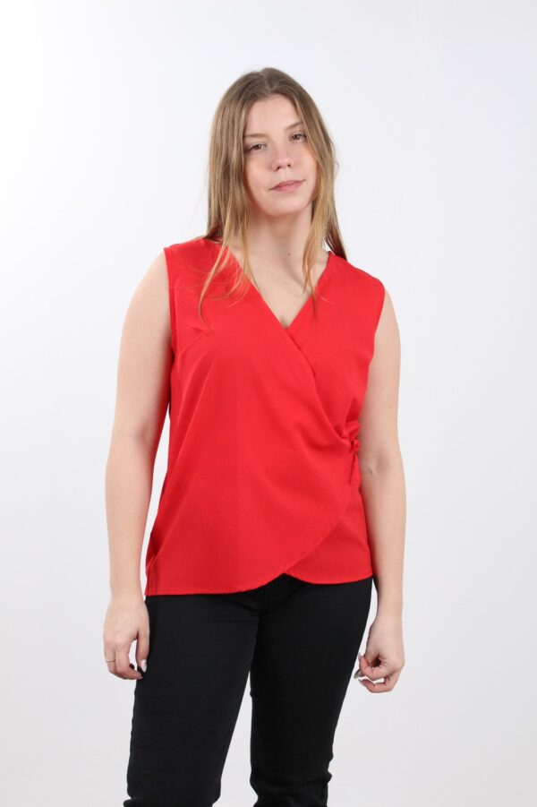 גופיה בגזרה צמודה מעטפת עם אופצית קשירה, צווארון וי