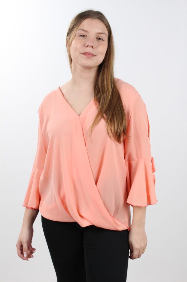 חולצה בגזרה רחבה מעטפת עם צווארון וי ושרוולי 3/4 מתרחבים