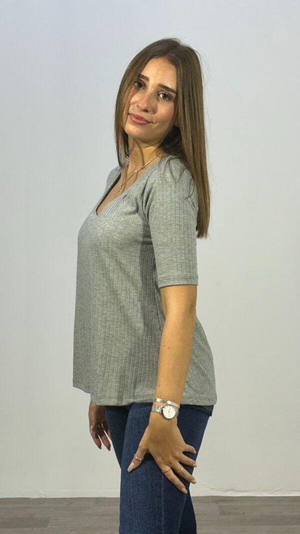 חולצה בגזרה רחבה עם צווארון עגול משלבת טקסטורת ריבים