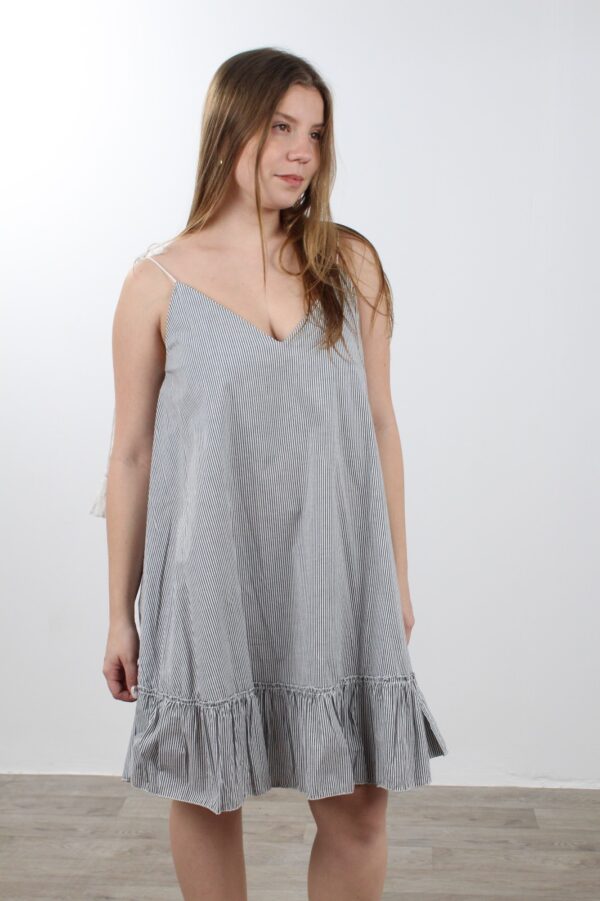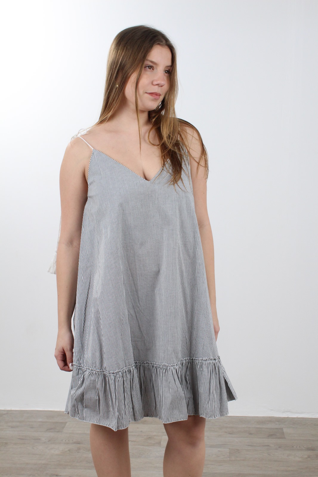 שמלה בגזרה רחבה עם צווארון וי משלבת אופציה לקשירה בכתפיות