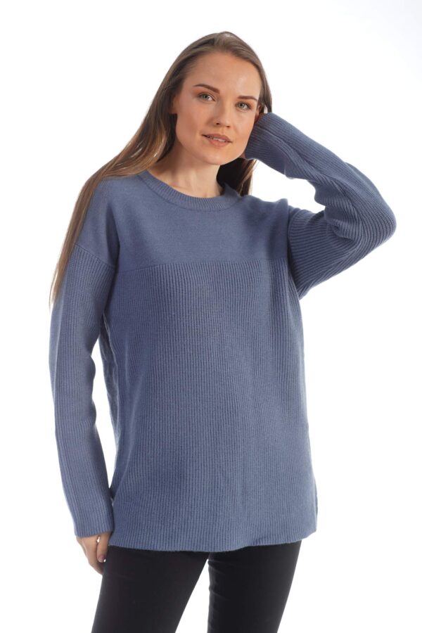 סריג בגזרה קלאסית עם עיצוב בסריגת גסקה עליונה וסריגה עבה רכה ומיוחדת . עם שני שליצים בצדדים.