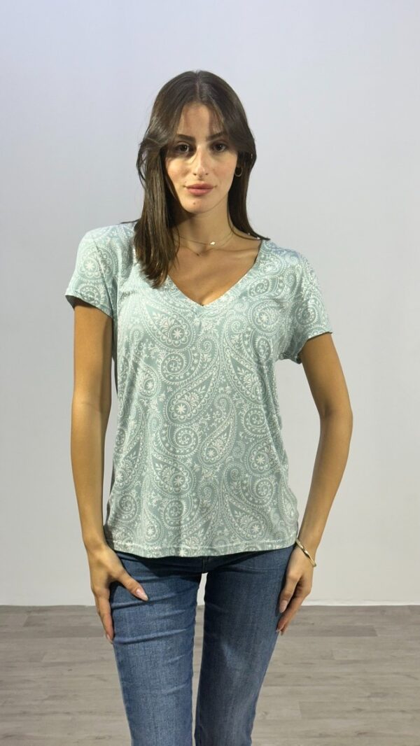 חולצת בייסיק עם צווארון וי בשילוב דפוס