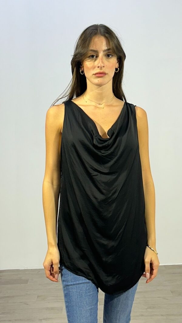 גופיית טוניקה בגזרה רחבה עם צווארון רבידה