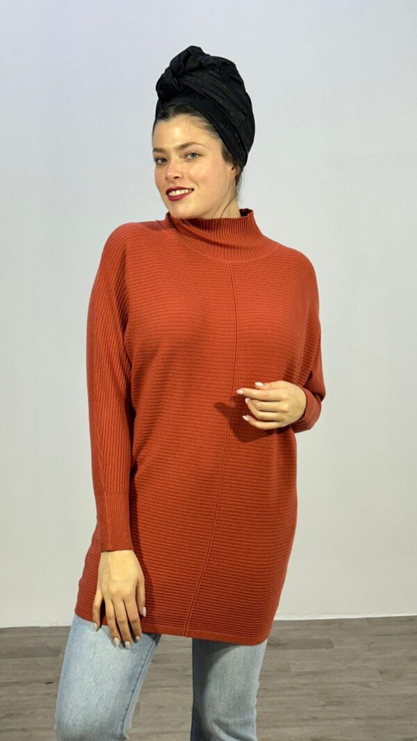 טוניקת סריג בגזרה רחבה עם צווארון גולף מושלמת טקסטורת ריב