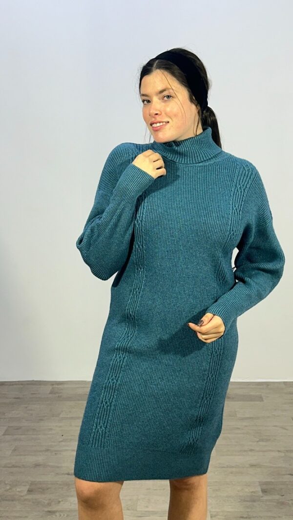 שמלת סריג בגזרה צמודה עם צווארון גולף
