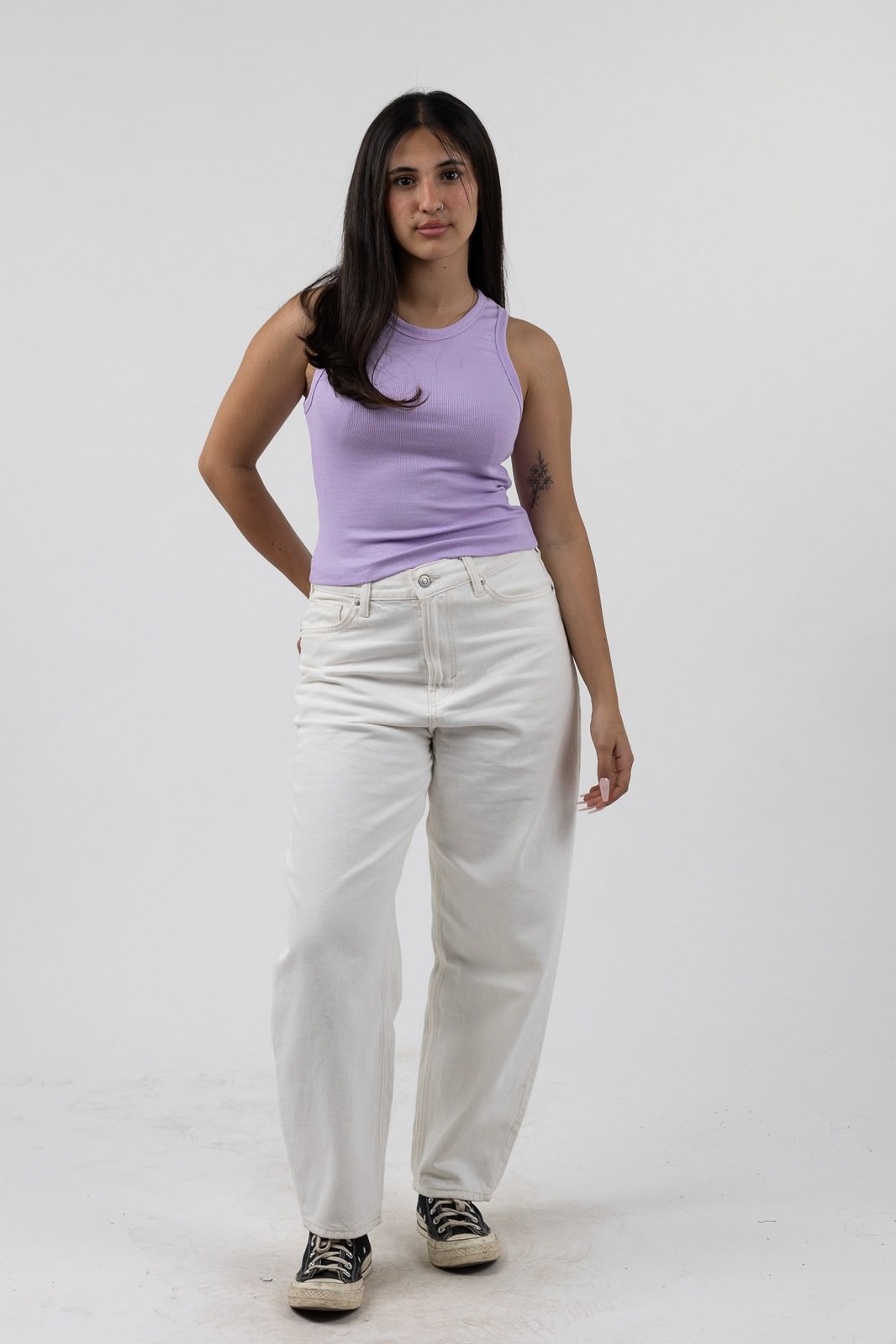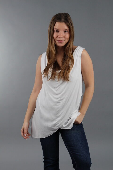 גופיית רבידה מבד ויסקוזה, בחלק האחורי הבד עם לייקרה נמתח ולכן מתאים למגוון רחב של מידות