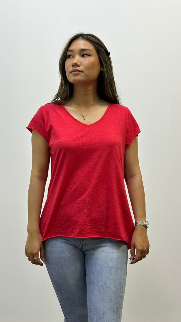 טישרט בייסיק מבד כותנה שעבר שטיפה של צבע במים חמים למראה אחיד