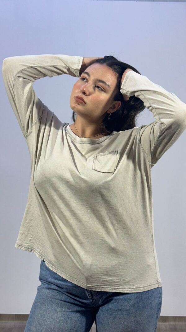 חולצה בגזרת אוברסייז עם צווארון עגול משולבת כיס