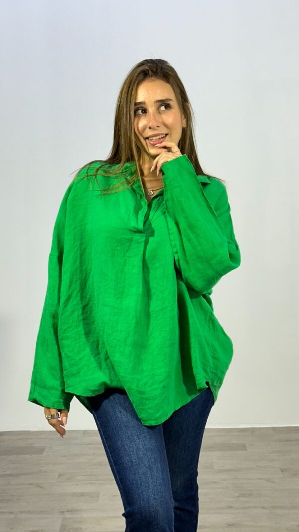 חולצת אריג מבד פשתן בגזרת אוברסייז עם צווארון V