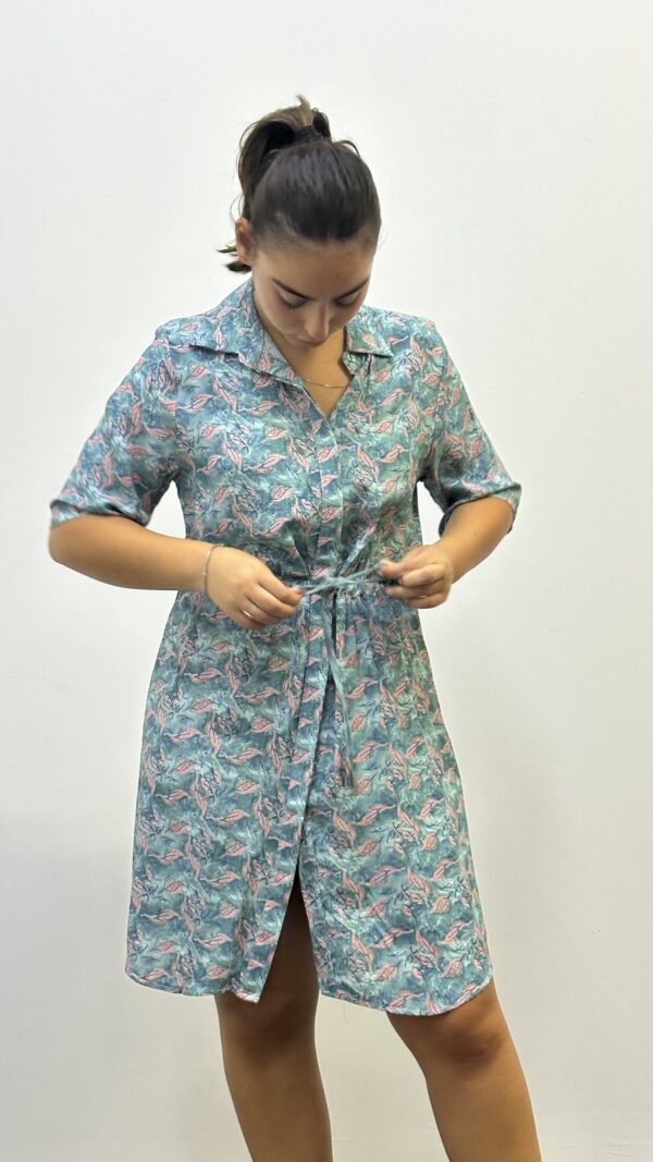 שמלה בגזרה צמודה עם צווארון כפתורים משולבת דפוס ואופציה לקשירה