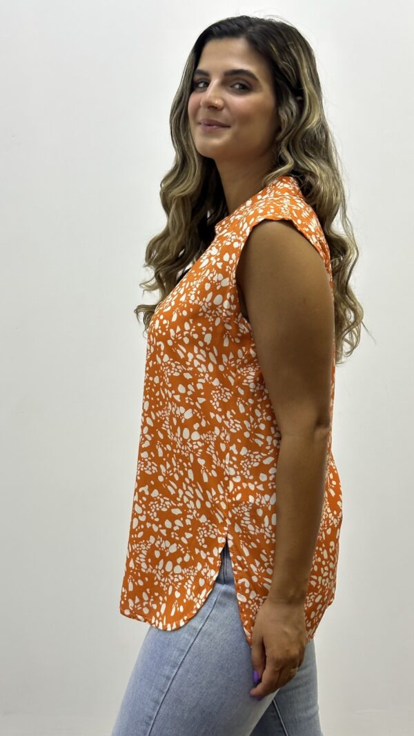 חולצה ללא שרוולים בגזרה צמודה עם צווארון כפתורים משולבת דפוס
