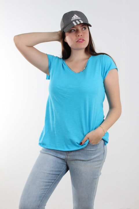 חולצת בייסיק בגזרה ישרה עם צווארון וי