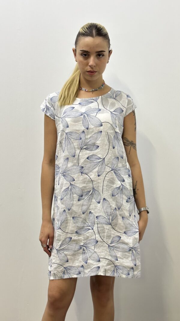 שמלה בגזרה צמודה עם צווארון עגול משולבת דפוס