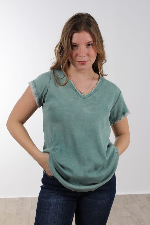 חולצת בייסיק בגזרה ישרה עם צווארון וי