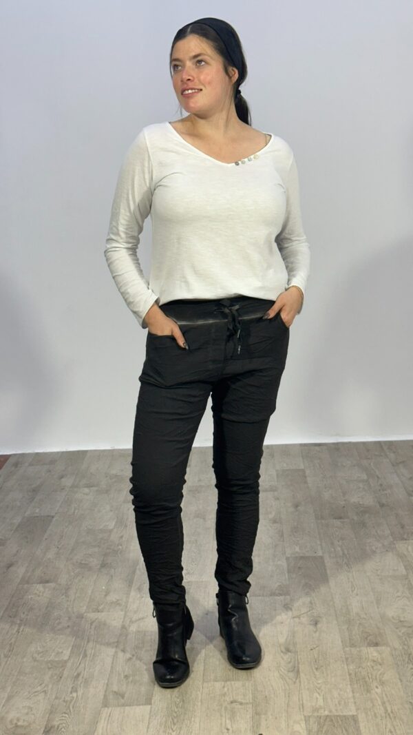 מכנס לייקרה עם שרוך בשטיפת ווש למראה לא אחיד בצבע