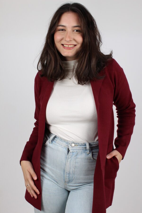 ג’קט סריג בגזרה ארוכה, רחבה עם צווארון מחויט בשילוב כיסים