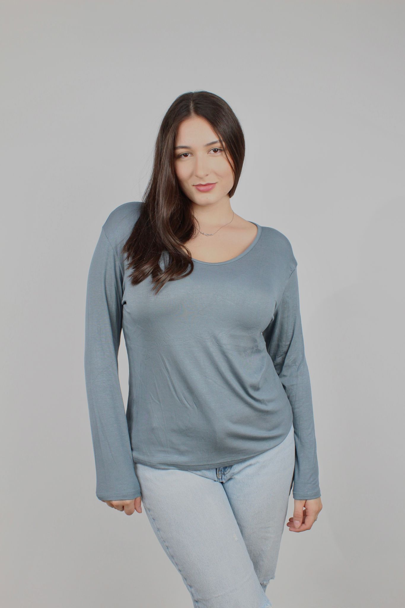 חולצת בייסיק בגזרה רחבה עם צווארון וי
