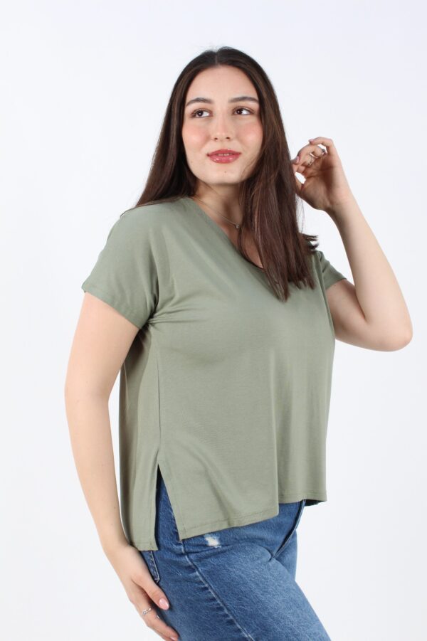 חולצת בייסיק בגזרת אוברסייז עם צווארון וי ושליצים