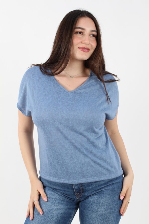 חולצה בגזרת קימונו משוחרר, מחשוף V מבד פשתן כותנה