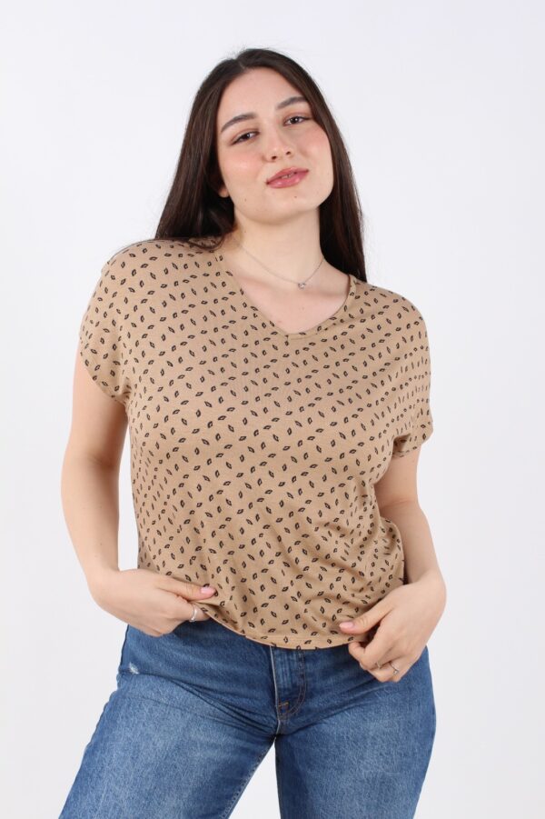 חולצה בגזרת קימונו משוחרר, מחשוף V מבד סימפוניה מודפס