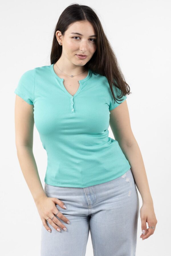 חולצת בייסיק מבד ריב ויסקוזה בגזרה צמודה עם צווארון וי ושינה כפתורים