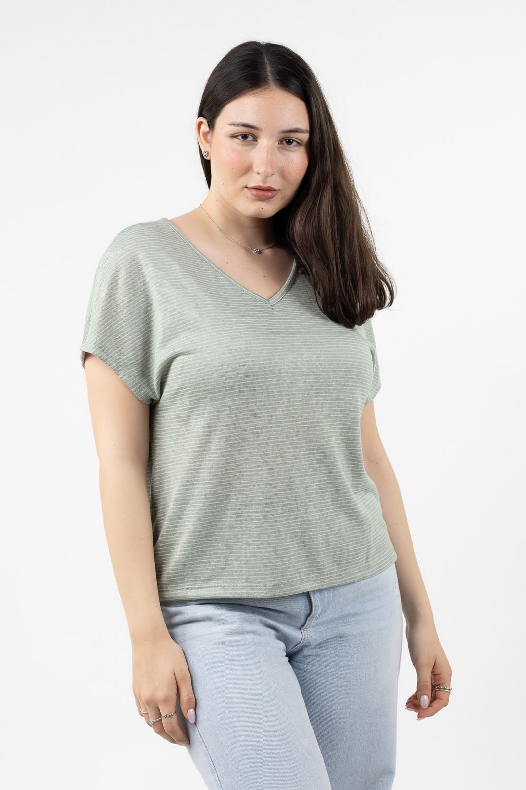 חולצת פסים בגזרה רחבה עם צווארון וי